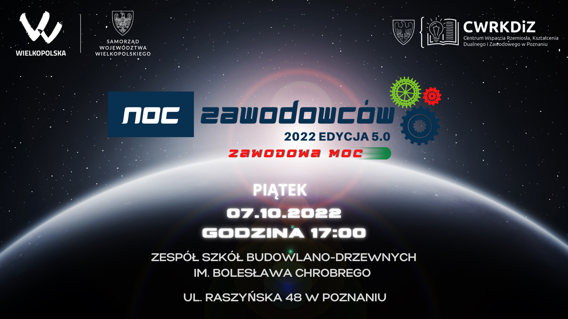 Centrum Wsparcia Rzemiosła, Kształcenia Dualnego i Zawodowego w Poznaniu zaprasza na wydarzenie ,,Noc Zawodowców 2022 Edycja 5.0", które odbędzie się 7 października 2022 r.